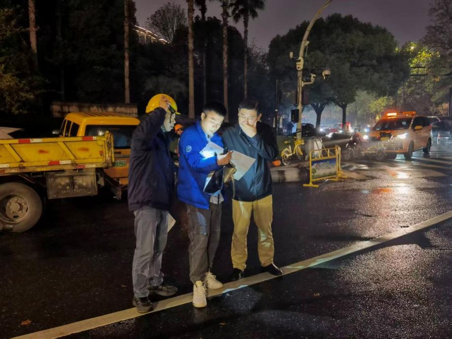 此次提壓改造內容涵蓋多個方面、任務繁重,共涉及開挖點31處,修復破損點6處,啟閉閥門52個,啟閉調壓器18臺。為最大程度降低施工對居民生活的影響,施工采用“分階段、分區域”的夜間施工模式。在提壓改造工程籌備階段,多次組織專題討論會,將“安全第一”原則貫穿始終,通過提前開展多輪現場實地勘查,精準掌握實際情況,進而不斷優化施工方案、完善應急預案,為工程順利推進提供有力保障。在工程組織實施階段,分管領導鐘奇作為現場總指揮,帶領生產安全科、天目運行站、水湘運行站組建專項保障團隊,涵蓋割接施工組、調壓操作組、管線巡查復核及應急搶修等崗位,安排專人精準負責開關閥門、抽插盲板等關鍵操作,運用5G應急指揮車,對現場實時高效指揮,進而實現對施工全流程的有效管控。針對施工覆蓋區域及周邊管網,采用PPB級巡檢車開展全方位、無死角的泄漏排查工作,確保無安全隱患。面對地下管網錯綜復雜、有限空間作業環境復雜多變的嚴峻挑戰,團隊成員憑借對管網布局的精準研判與豐富的實戰經驗,在嚴守安全紅線、確保安全生產“零事故、零傷害”的前提下,協同奮戰、攻堅克難。從現場勘查、方案制定到施工操作、質量驗收,各個環節緊密銜接、高效推進,以“輸配速度”詮釋了“燃氣鐵軍”的使命擔當。