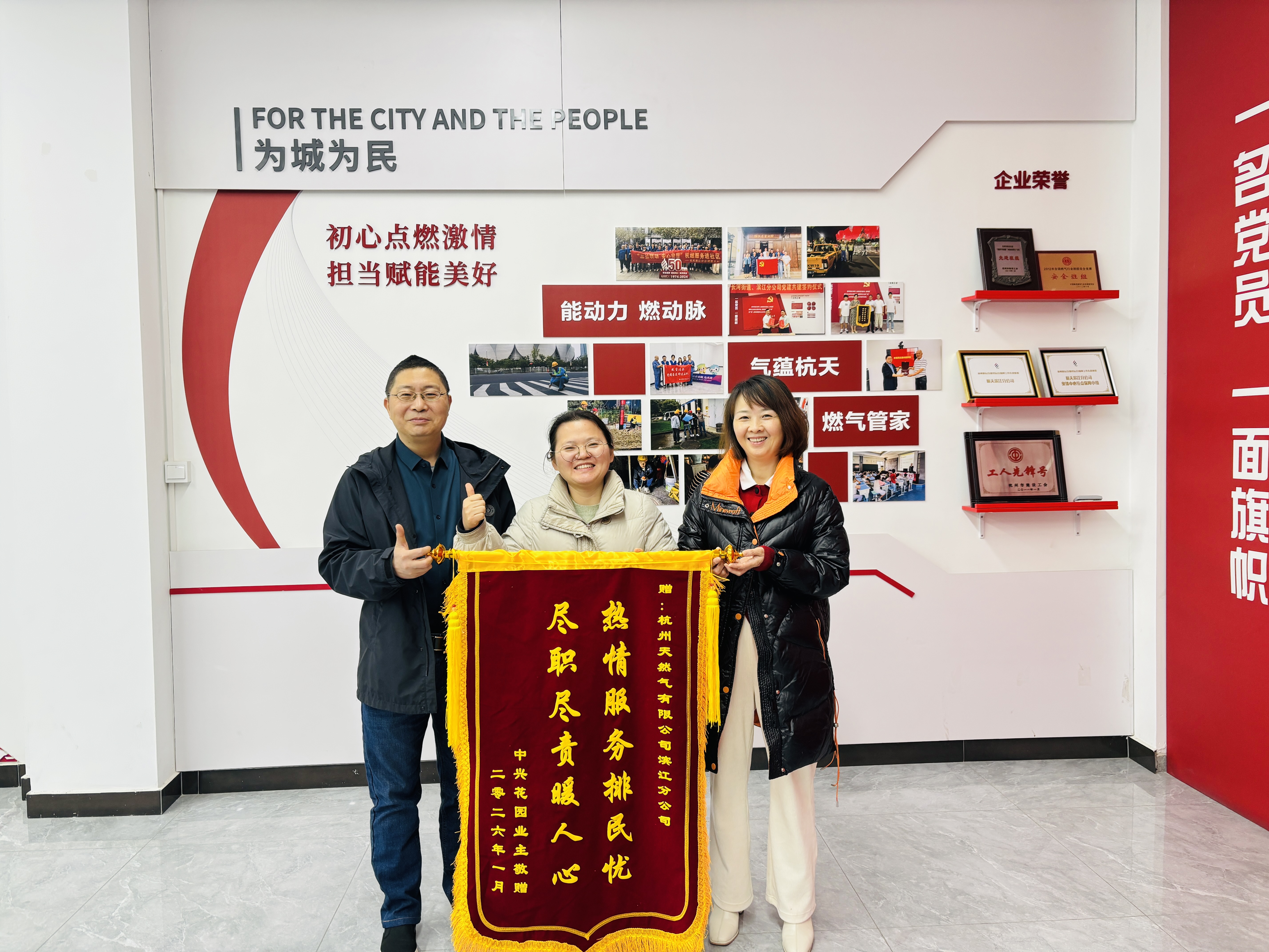 這面錦旗,是榮譽,更是鞭策。濱江分公司將繼續秉持“民生無小事”的理念,踐行“急用戶所急、想用戶所想”的承諾,以更快的響應、更專業的技能、更暖心的服務,守護千家萬戶的灶臺安全,續寫更多暖民心、惠民生的溫馨篇章。