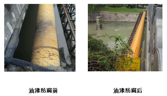 燃?xì)鈽蚬芊栏禽斉浞止?013年技措技改項(xiàng)目,上半年巡檢、巡護(hù)人員結(jié)合日常檢查工作,對在線運(yùn)行的橋管腐蝕情況進(jìn)行檢查統(tǒng)計(jì),并做好相應(yīng)的資料(如照片、管徑、長度等)采集。8月初,分公司確定了施工單位,并與之簽訂了安全、文明施工協(xié)議。在協(xié)議中,針對橋管易受水氣侵蝕的特點(diǎn),要求施工單位嚴(yán)格施工工藝(除銹-打磨-防銹底漆-面漆等),按照施工規(guī)范進(jìn)行施工,同時(shí)要求施工單位落實(shí)安全責(zé)任,做好相應(yīng)安全防護(hù)措施;在實(shí)施過程中,輸配運(yùn)行分公司管理人員不定時(shí)對施工現(xiàn)場的安全和施工質(zhì)量進(jìn)行抽查,確保施工質(zhì)量達(dá)標(biāo)。通過2個(gè)多月的施工,完成了計(jì)劃的19座橋管防腐工程,其中 5座是燃?xì)鈽蚬芨g影響城市美化的數(shù)字城管案卷。