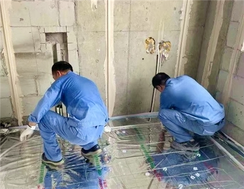 師傅正在安裝地暖。受訪者供圖