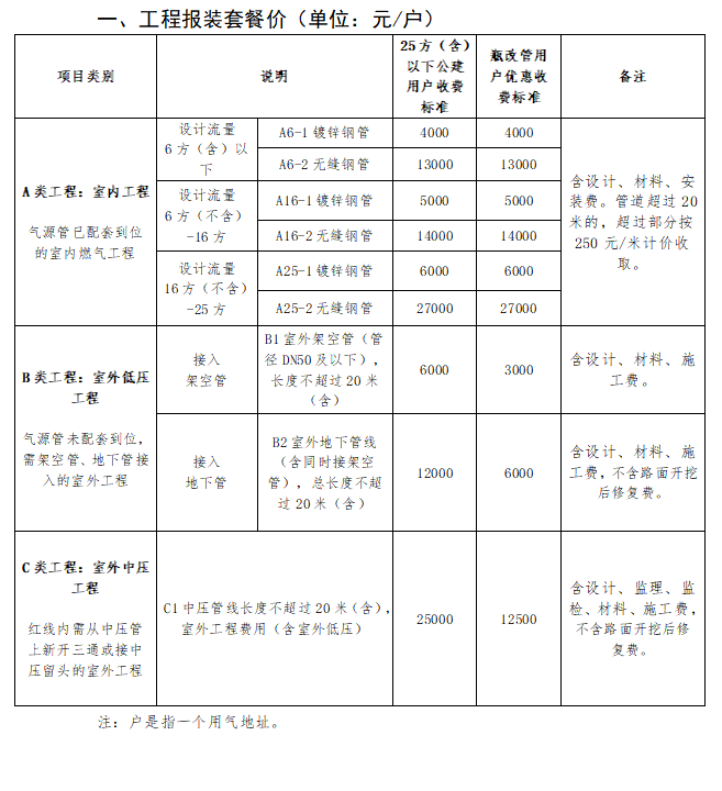 小時設計流量25方(含)以下非居民用戶工程服務收費標準